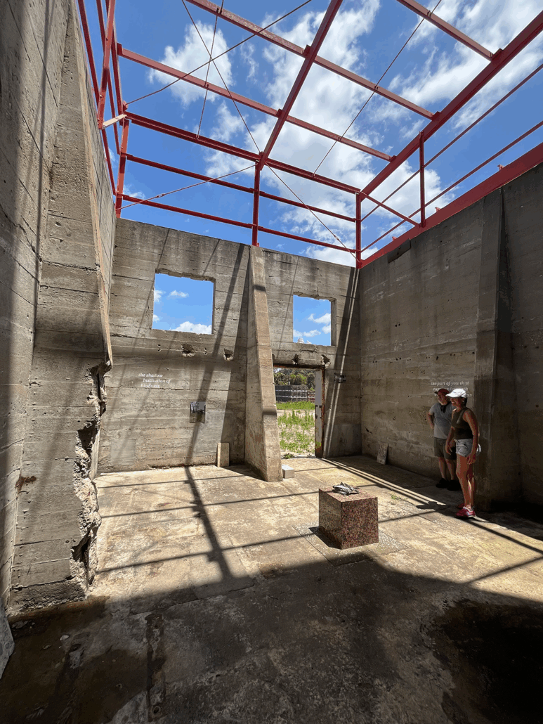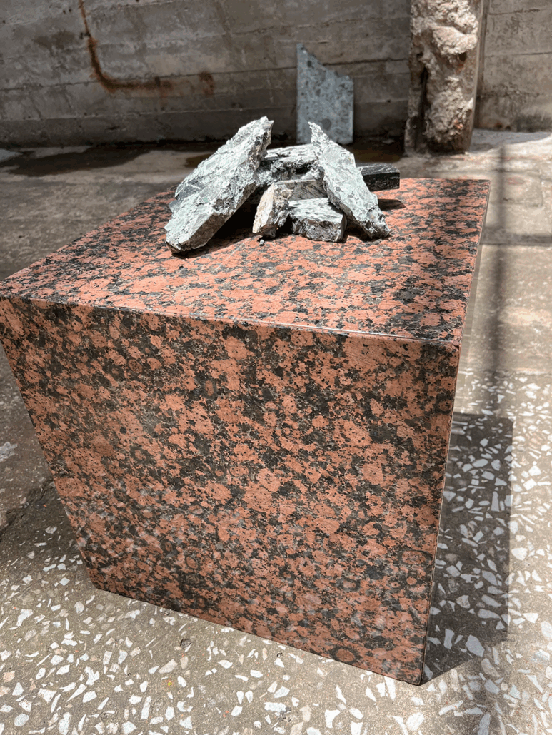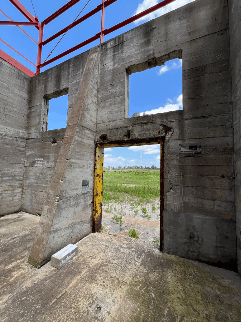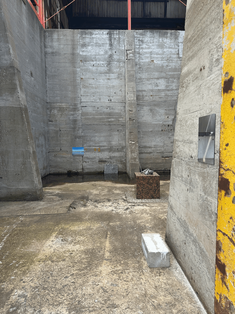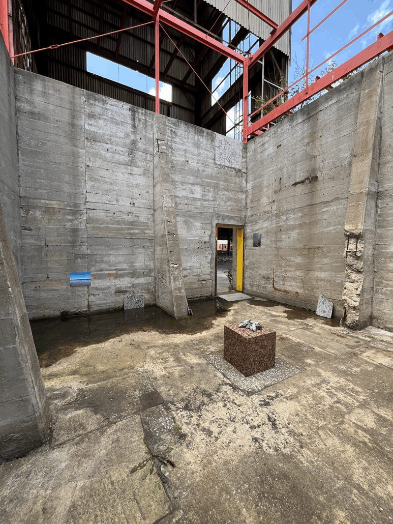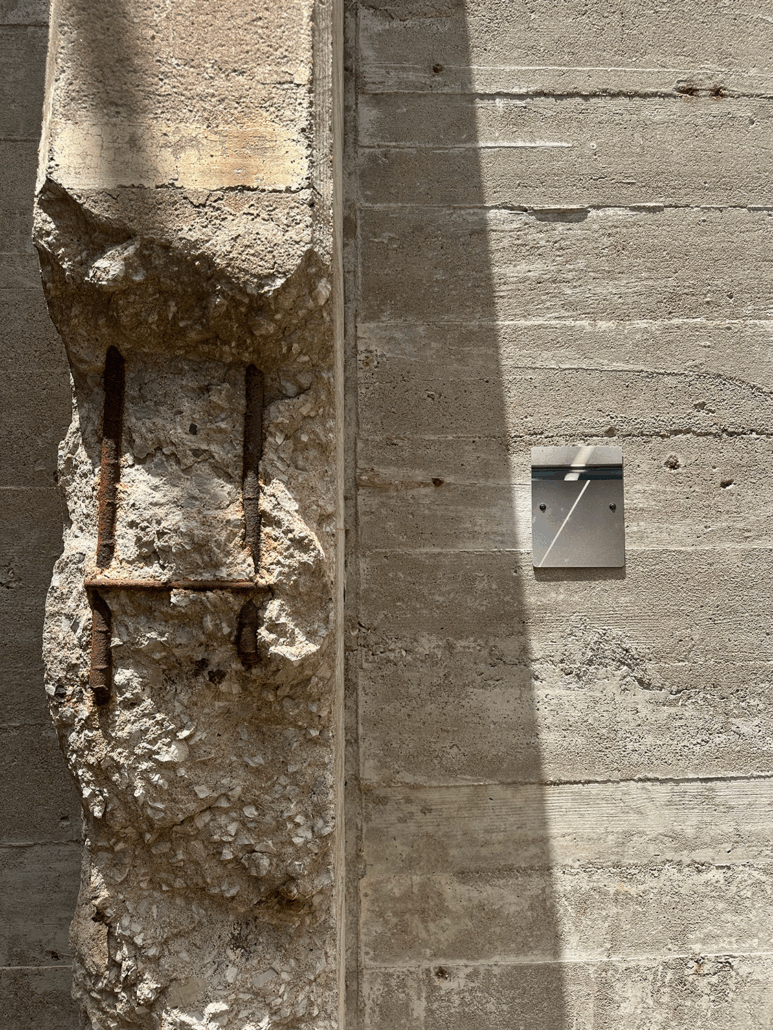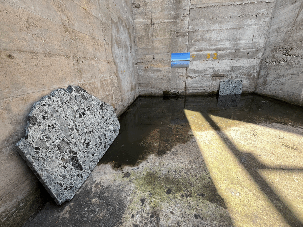 a different, better self was a site responsive installation for NONSTNDRD, featuring photographs and text from my series The Parts combined with materials borrowed from the National Building Arts Center. The installation is a loose reflection on the passage of time over the course of a day (the movement of light), the season (the movement of water), and a lifetime (the movement of emotional memory). a different, better self features two sets of photographs printed on reflective aluminum: three images of the Missouri landscape (one urban, one suburban, one rural) shot during the locked-down spring of 2020, and three images of a beam of light moving through the architecture of the Pulitzer Arts Foundation, where I had a solo exhibition in 2021. The featured text, applied directly to the bunker in spray chalk (a temporary and changeable medium designed to erode over time), questions the role of empathy as a central lens of understanding, highlighting implicit challenges in the mandate to love: one wall reads “the shadow institution of kindness,” and the other “the part of you that rages underneath all that tenderness.” The exhibition’s title is also drawn from The Parts: an excerpt of the statement, “In isolation, you imagine you might be able to become a different, better self: someone who gardens, someone who’s calm.”