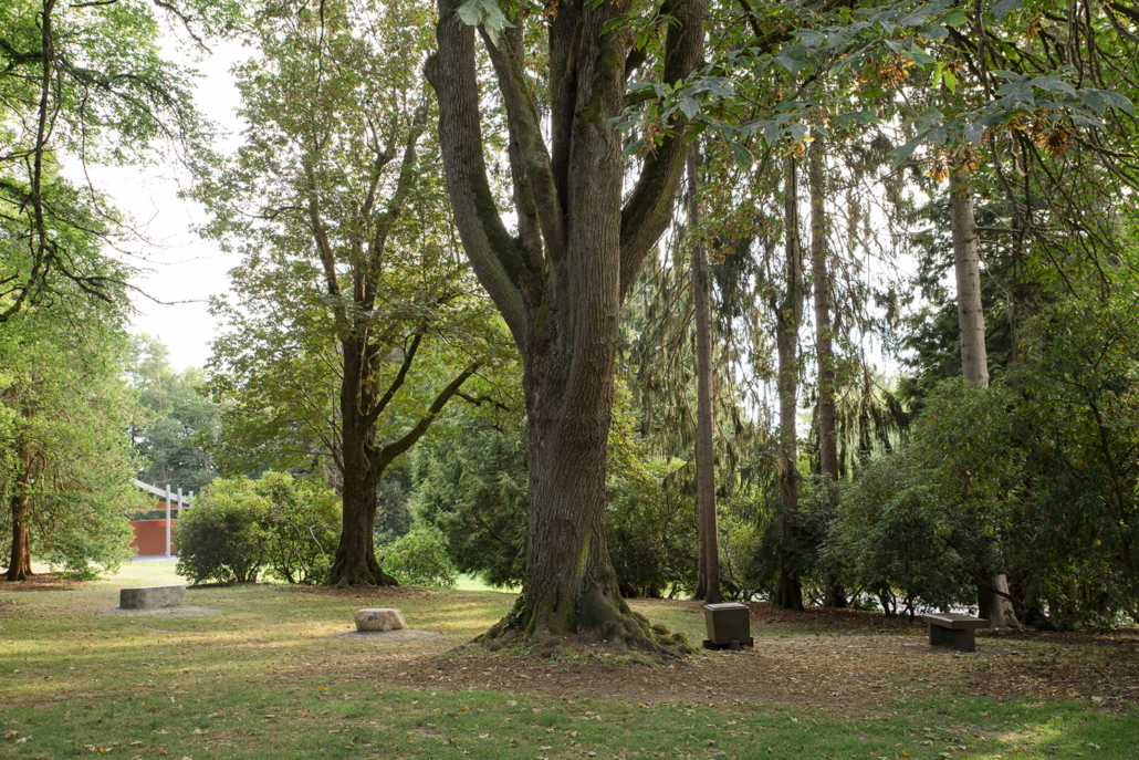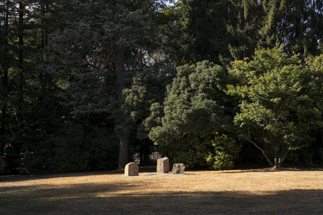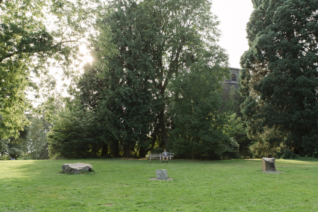 Throughout Volunteer Park, installation sites are occupied by a single bench, or in groupings of up to three, creating both individually meditative and social spaces for visitors. The engraved text on each sculpture is in the font Optima, chosen by American designer and sculptor Maya Lin for the Vietnam Veterans Memorial in Washington D.C. This font thereafter became a standard for memorial writing, but is also commonly used by contemporary wellness and healthcare brands. Lin’s remembrance of those killed in the war was unveiled at a time the country was experiencing another epidemic: AIDS. While that moment of memorialization and tragic loss resonates with our current pandemic experience and that of larger global aggression, it also ties to the local histories of Volunteer Park as a site for AIDS activism—ultimately grappling with the ongoing politics of isolation, shame, care, and what binds us in sickness and in health.