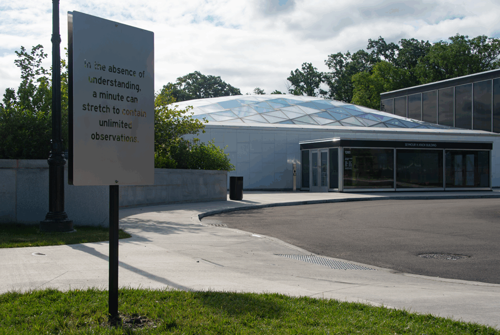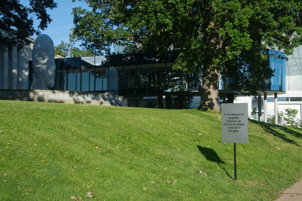 Set within both the museum campus and the wider park, the work is meant to appear and disappear from view. There is no way to “see” the work all at once. There are only discrete experiences that add up to a larger whole, relying on the landscape and a viewer’s unique journey, the signs they notice, and the natural surroundings they observe.